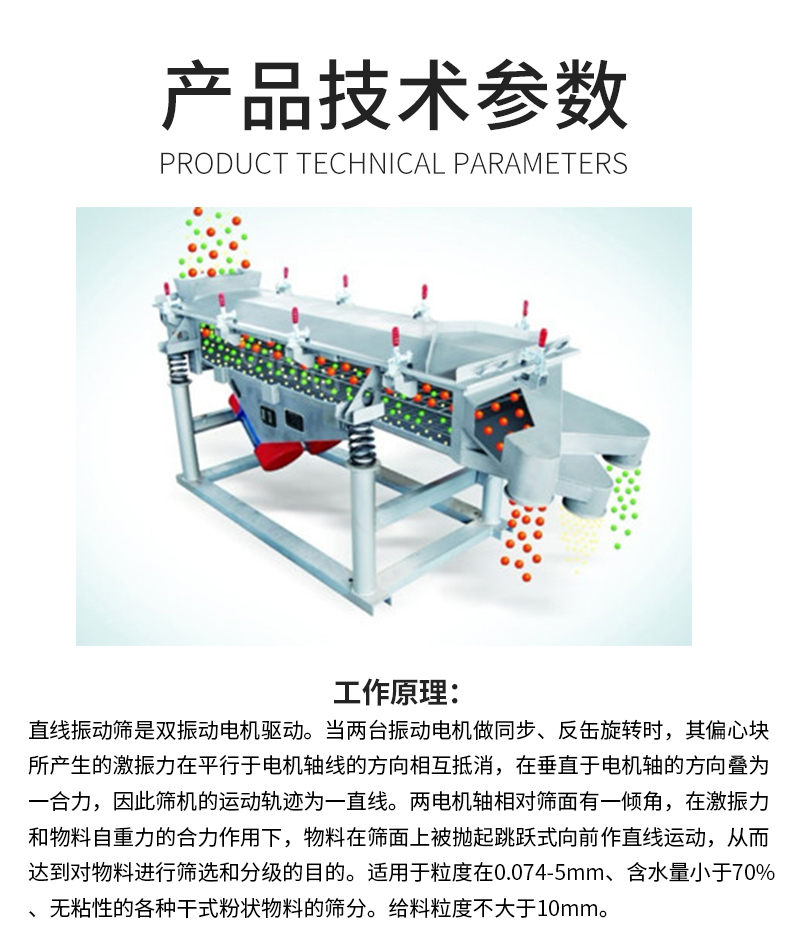 【物料要求】:顆粒度物料,如食品,化工,建筑類物料原料 【產(chǎn)品簡述】:多層直線振動(dòng)篩是以雙震動(dòng)電機(jī)為激震源,物料分為多種規(guī)格粒度,一次進(jìn)料,多層分級(jí),解決客戶程序多的問題。多層直線振篩機(jī)可以...